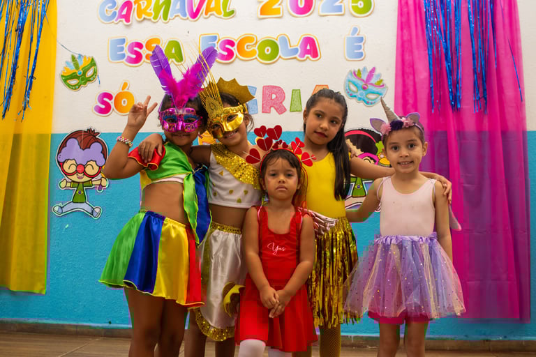 Mais que folia, o nosso Carnaval é um convite à criatividade e ao respeito à diversidade cultural. Com fantasias, músicas e muita cor, os alunos vivenciam essa festa popular de forma lúdica e educativa.